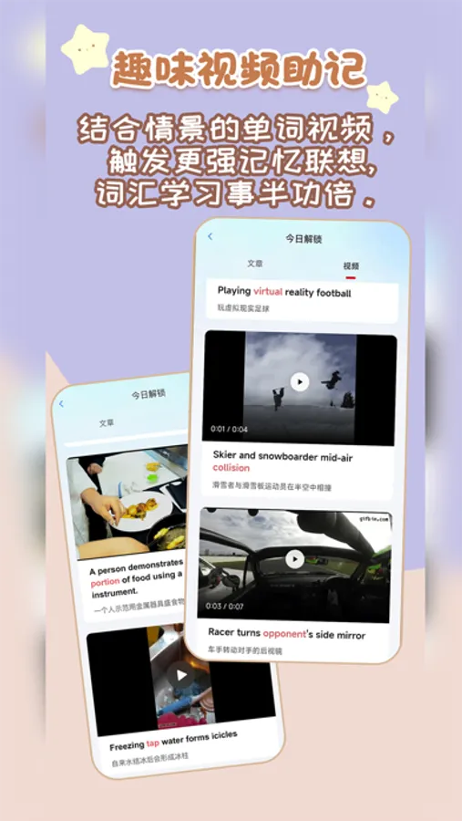 3、 根据单词掌握程度智能推荐阅读文章,在文章中回想单词,提升单词回想能力的同时,二次强化记忆