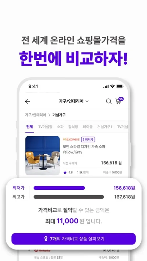 한번의 검색으로 전세계 쇼핑몰들의 제품을 비교해 최저가 구매보장