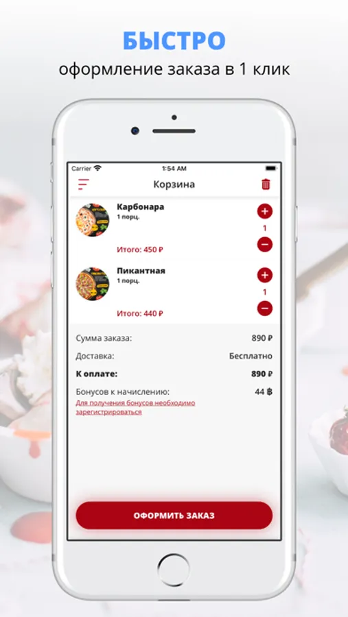 Скачивайте наше приложение, оформляйте заказ и наслаждайтесь любимой едой, где бы Вы ни были! Приятного аппетита!