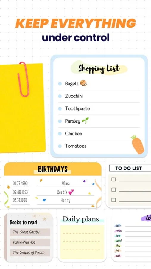 Multitasking notes for everything! Keep all your agenda together or use them as a motivation board. Join us today!