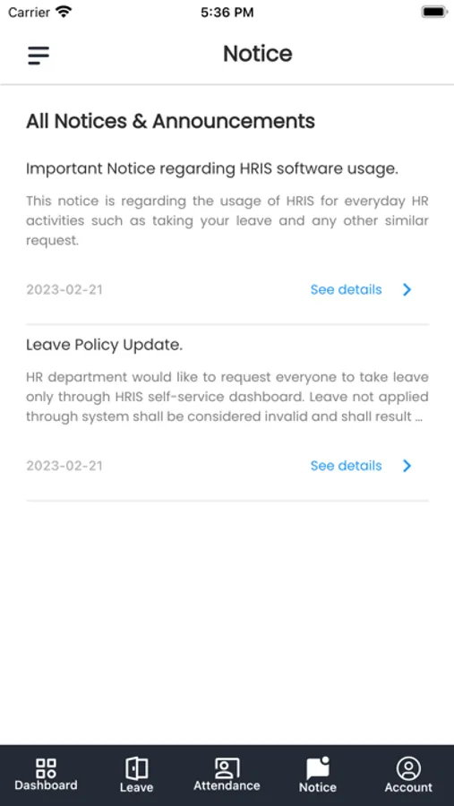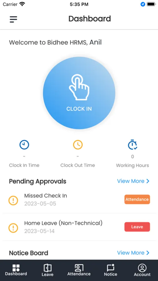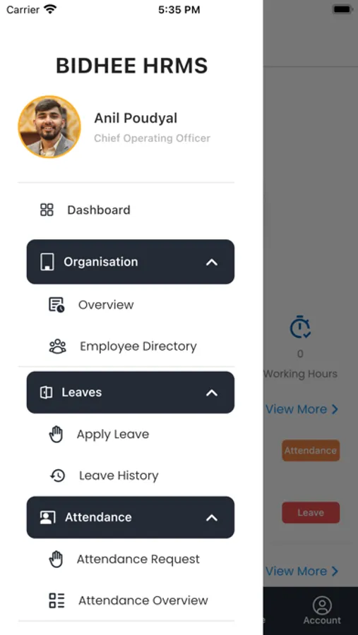 Human resource management application brought to you by Bidhee Pvt. Ltd. The app allows realtime check in and check out of the office employees to track the arrival and departure alongside attendance. Employees can check logs of their timings as well as apply for leave.