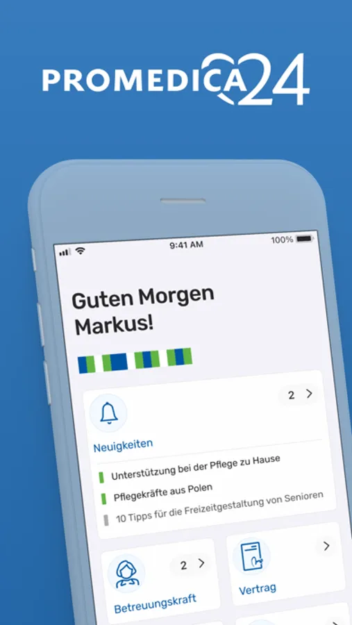 Wir Promedica24, sind ein führendes Unternehmen in der Betreuungsbranche und haben diese App für unsere Kunden entwickelt. Mit Hilfe dieser App haben Sie mobilen Zugriff auf: