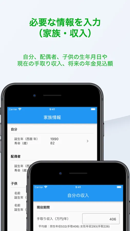 家族の収入、老後の収入など