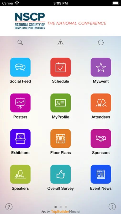 This TripBuilder Multi Event Mobile™ app is provided at no charge by the National Society of Compliance Professionals. It was designed and developed by TripBuilder Media Inc. If you have any questions, or need any support regarding how to use this app, please submit a Support Ticket (located within the Help icon in the app).