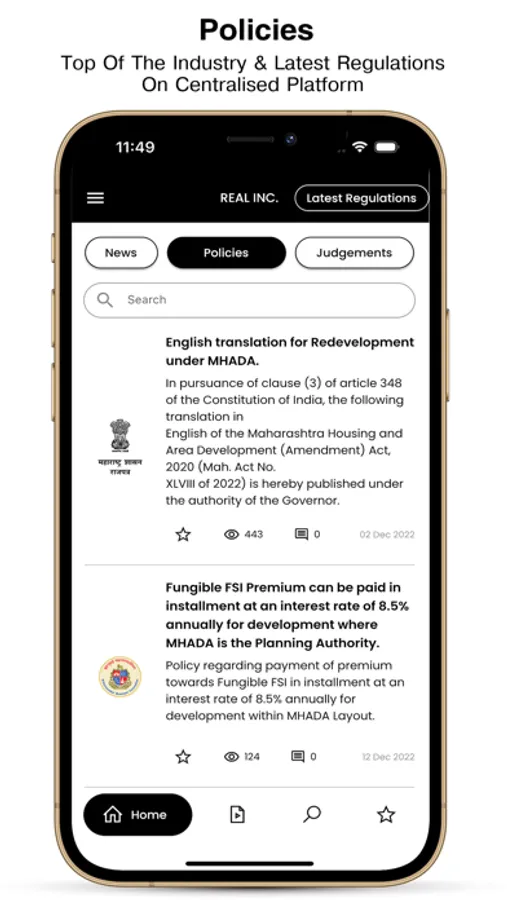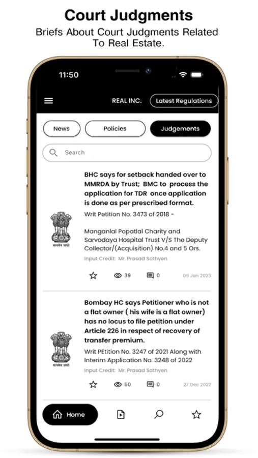 The REAL Inc. App offers the latest Realty Indian News on your device. App presents everything that an avid industry reader is looking for and in-depth coverage of circulars and general regulations declared by MCGM, Govt of India, Govt of Maharashtra, Urban development department, MHADA etc.
