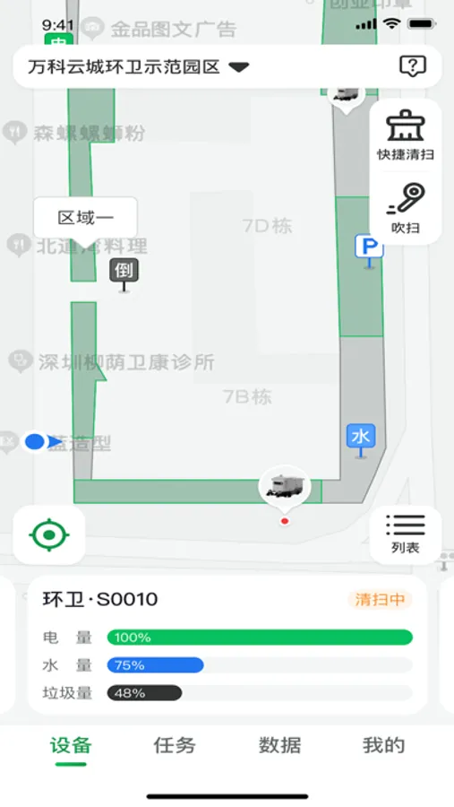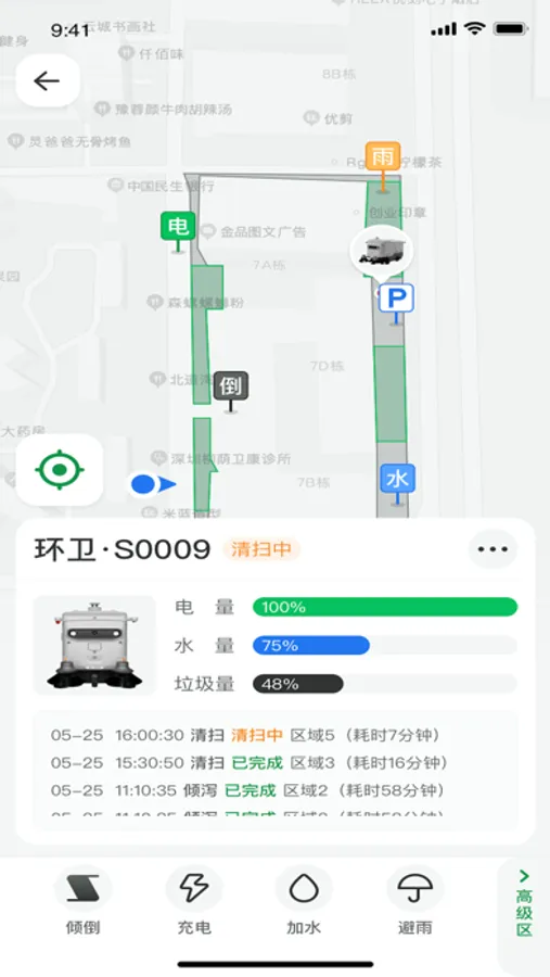 清扫区域地图:查看清扫区域范围,机器人实时位置。