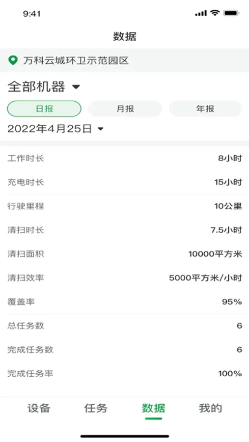 清扫数据:每日更新汇总机器人作业数据。