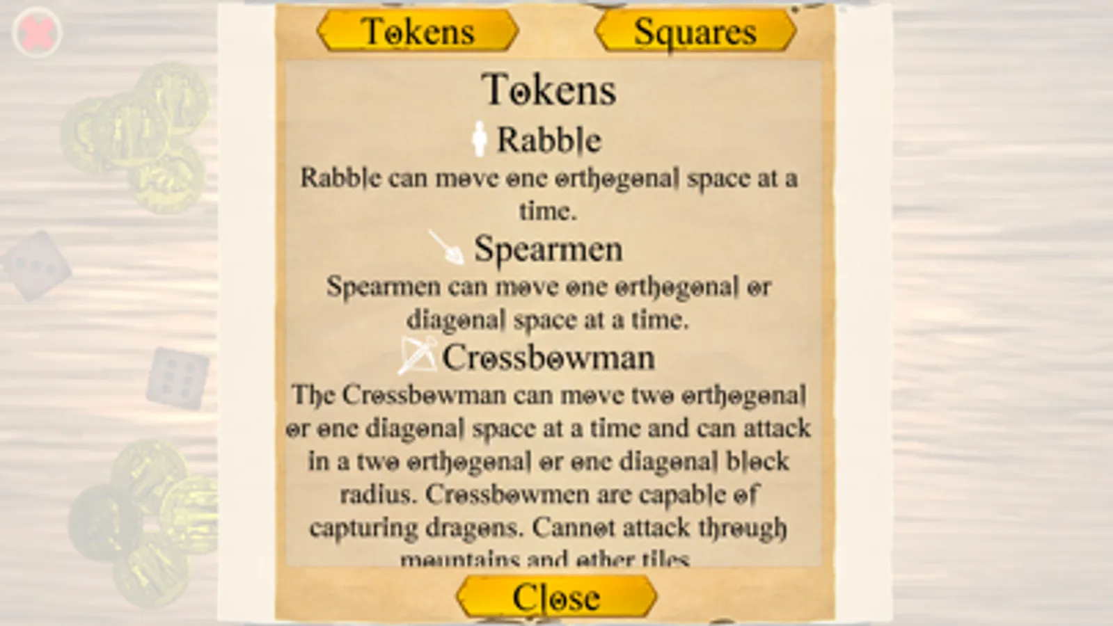 - Crossbowman can move two orthogonal or one diagonal space at a time and can attack in a two orthogonal or one diagonal block radius. Crossbowmen are capable of capturing dragons. Cannot attack through mountains and other tiles.