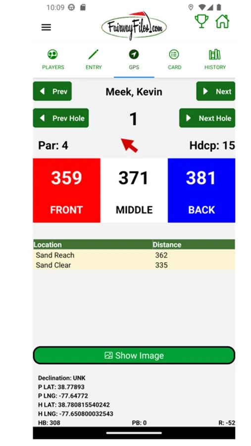 On course scoring features includes GPS range finder feature which shows distance to front/middle/back of green and distance to marked hazards and provides satellite images of holes when GPS information is available
