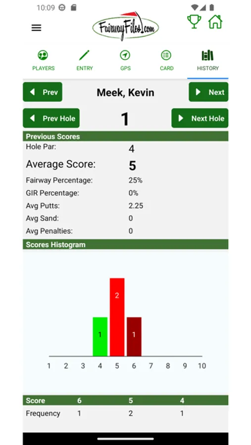 Historical scoring stats are available while you play including a histogram of previous scores for each hole.