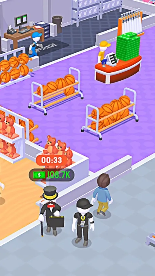 In idle shopping mall, take care of your customers too, offering them a wider range of options and quality products to increase your business with multiple employees. Research new features to improve the quality of your products, offers, and shops. Increase the power and capacity of your employees to earn more. Make your business grow. Become the best idle mall tycoon. Hire sellers and make them increase your sales and profits in cashier games. Set the salary of the employees for different shops.