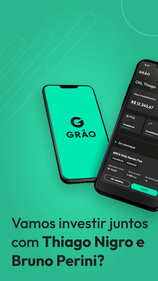 O app da Grão te dá acesso aos fundos de previdência criados pela gestora do Grupo Primo, que é um ecossistema de empresas do setor financeiro que tem como dois dos principais sócios os influenciadores Thiago Nigro (o Primo Rico) e Bruno Perini.