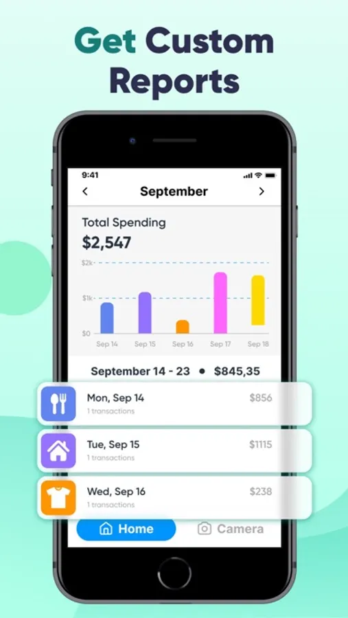 The application scanner reads all types of barcodes and QR codes. In addition, you can also attach a photo of the receipt to a specific purchase. At the end of the month, you will have a full report on your expenses with all the details. For example, the days you spend the most. Optimize your expenses and plan your budget for the long term.