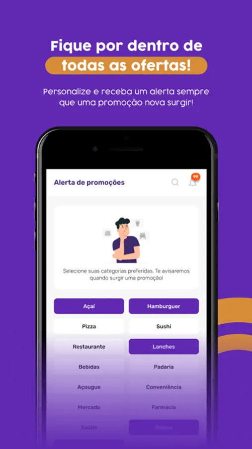 ALERTA DE OFERTAS: Cansou de perder aquela oferta incrível? Escolha suas categorias de produtos e/ou serviços preferidas e receba uma notificação sempre que uma nova oferta imperdível surgir!