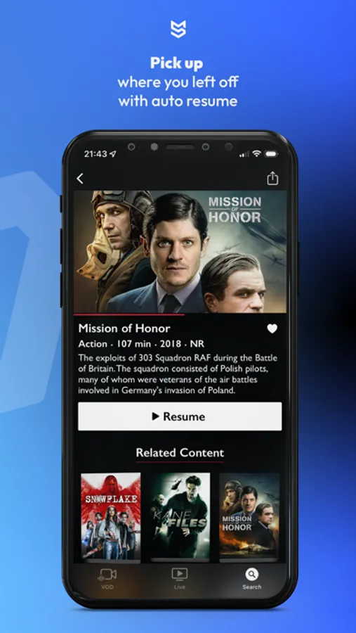 Registered users can save movies to watch later and enjoy a cross-platform experience where they can start watching a movie on one device, switch to another and pick up right where they left off. Registration is easy and only takes a minute.