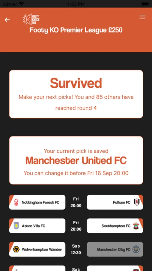 Football Knockout is a Free to Play Football game to see who has what it takes to be The Last Man Standing. Pick a team each week and if they win you are through, draw or lose you’re out! You can only pick each team once so pick wisely. Create your own league, invite friends and play already open leagues for prizes.