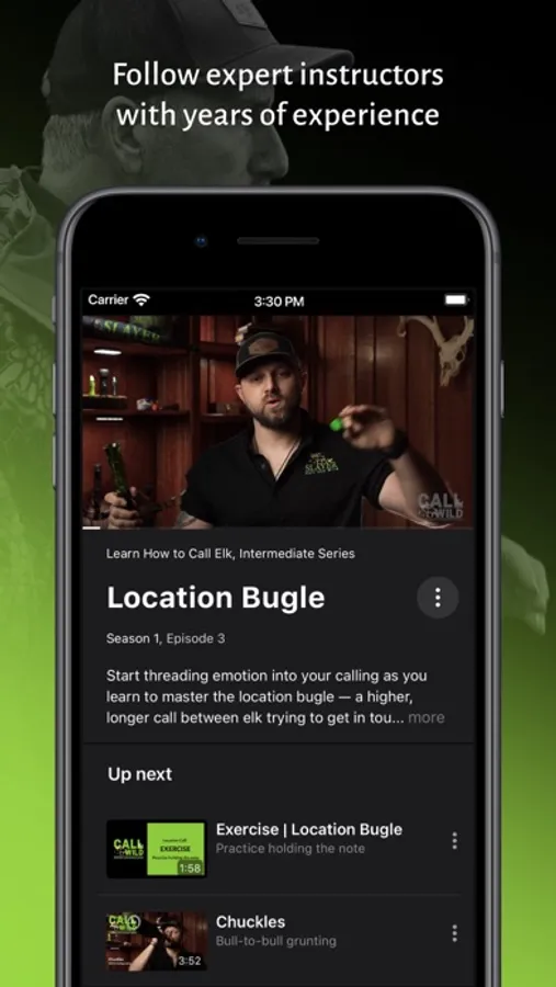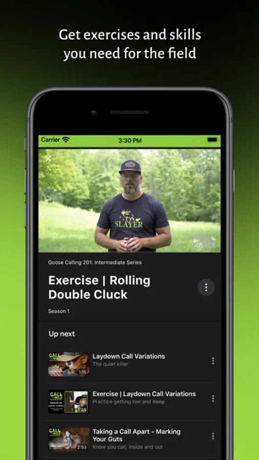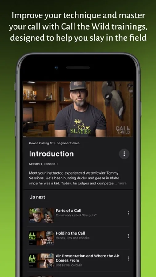 Expert instructors guide you through their tried-and-true lessons taken from the field and demonstrated at a professional level. In bite-size videos, instructors from Slayer Calls break down the complexities of calling into easy-to-understand lessons that you can watch at your own pace. Master your call by practicing with exercises — no pressure, no judgment.