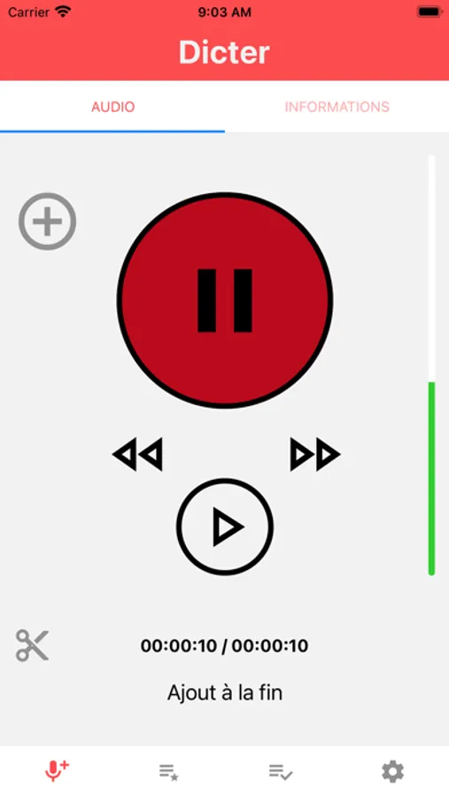 L'application offre la possibilité de s'authentifier à un système Postscriptum afin de créer des dictées audio.