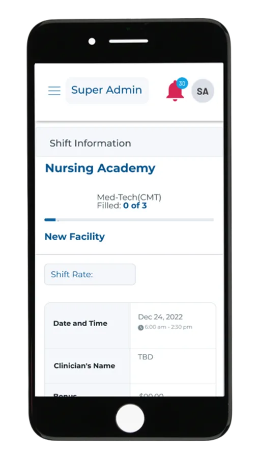 PRN Staffing Inc. Web Portal Application for Facility Managers and Clinicians.
