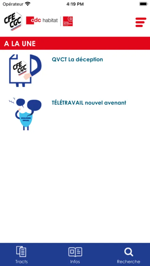 Cette application élaborée par les militants CFE-CGC de CDC Habitat vous permettra d’avoir :