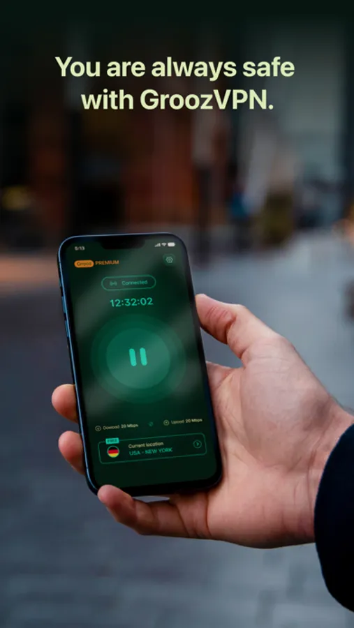With Grooz VPN, you can connect to any Wi-Fi network completely securely. When the VPN connection is active, potential malicious people cannot track you and never reach you.