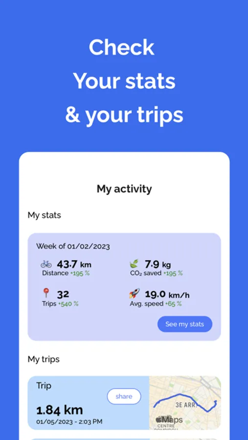 - Get aware of your carbon footprint, with CO2 saved when you’re cycling.