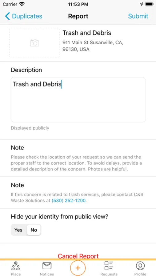 The Susanville Click & Fix app is a one-stop shop to participate and communicate with city services. The citizens can use this app as a tool for reporting non-emergency concerns. Your report will go quickly to the right city department to be addressed, connecting with our community, even while on the go. Citizens can upload photos, ask questions, and get status updates on their request. Our teams will respond, and you’ve helped our city become a better place with the click of a button! Sign up and select the option to receive notifications from the city, allowing us to better engage you on key issues within our community.