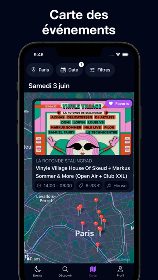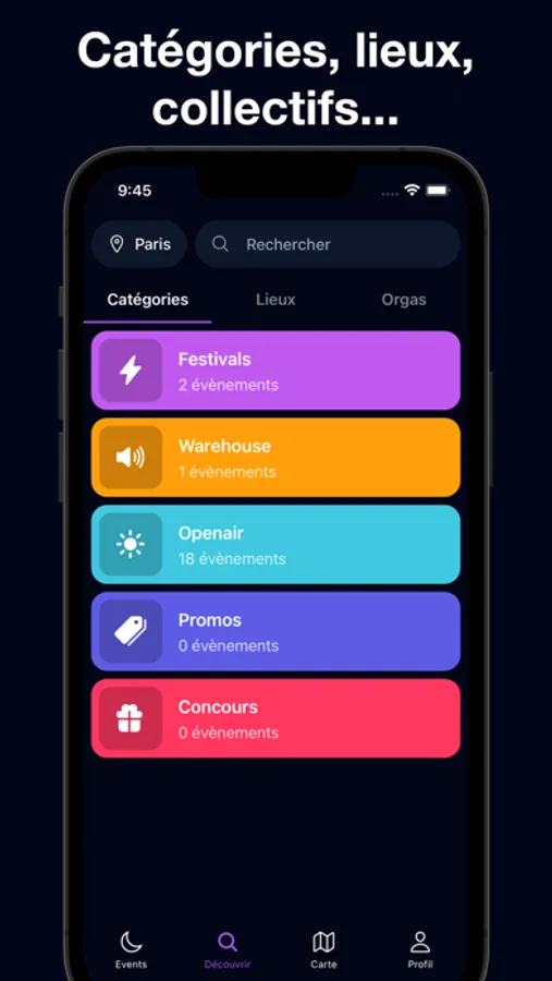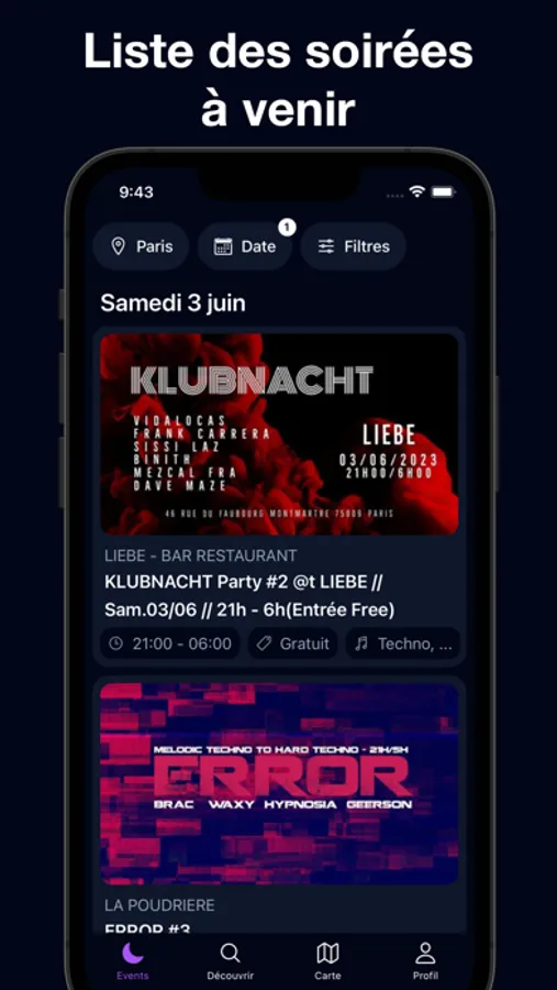 - voir les prochains évènements des bars, boites, assos et collectifs de ta ville