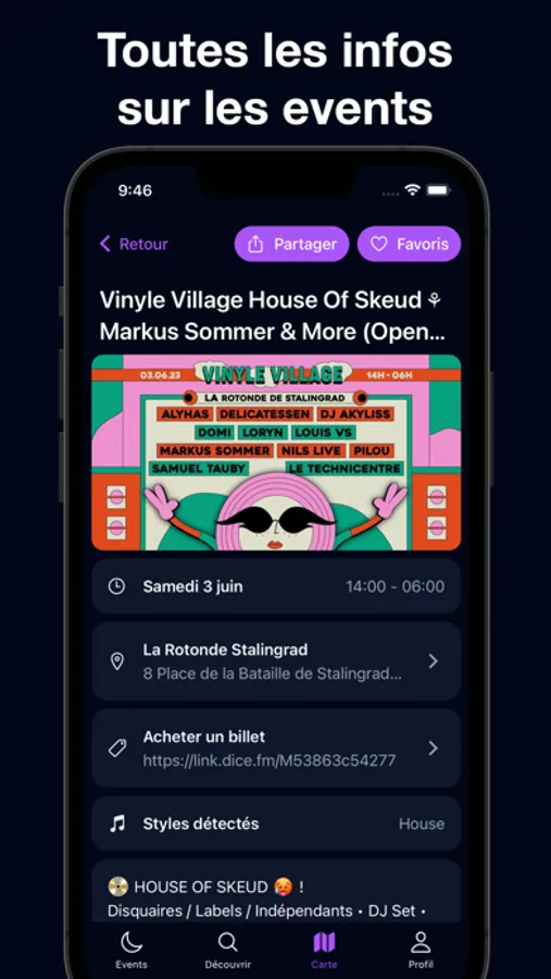 - ajouter aux favoris les soirées que tu veux sauvegarder