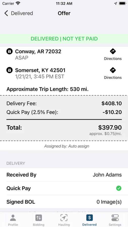 After you're approved and authorized, the dispatch will send you the best loads available in your vicinity and you'll be able to make a bid, accept or reject it!