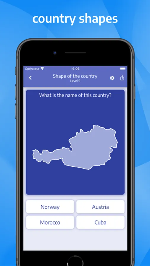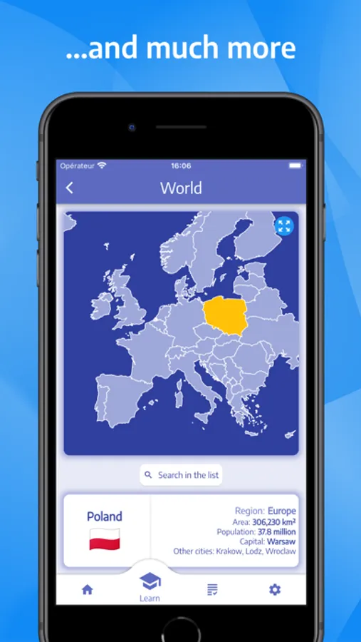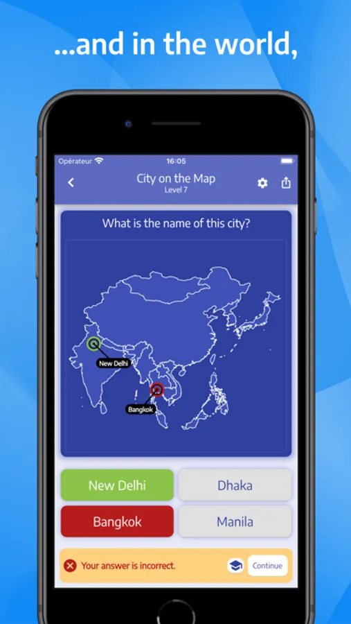 In this geographic quiz, you will learn to know the countries of the world and their capitals, cities, flags and administrative areas as well as how to identify them on the map.