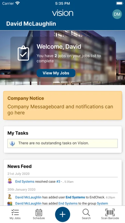 The Vision App allows for users out in the field to quickly and easily find details of appointments, complete job bookings, manage their holidays and leave, and track progress - all in one simple to use app.