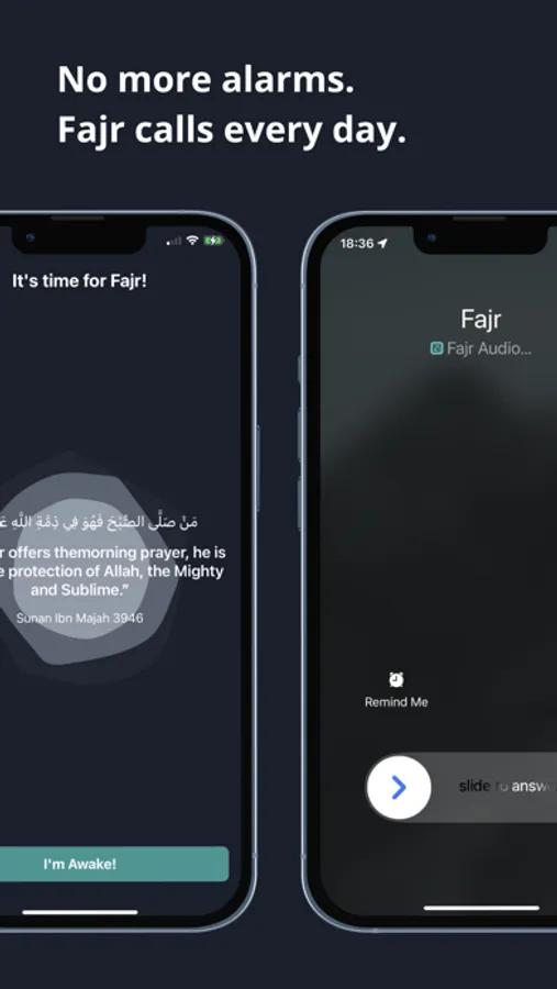 The Fajr App is a new way to wake up for Fajr, built by Muslims for Muslims. You don't need alarms anymore, we'll call you on time, every day.