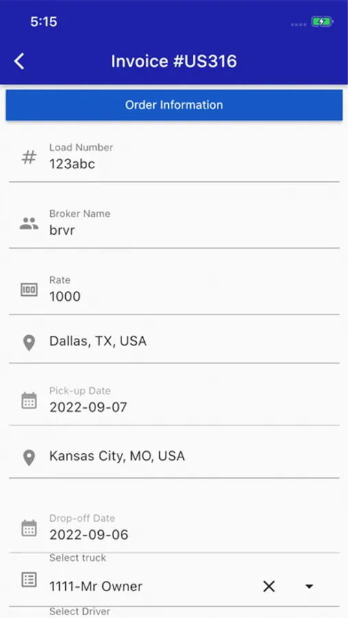Are you in need of tracking your loads , invoices , You are in the right place. Add load details and upload necessary documents.