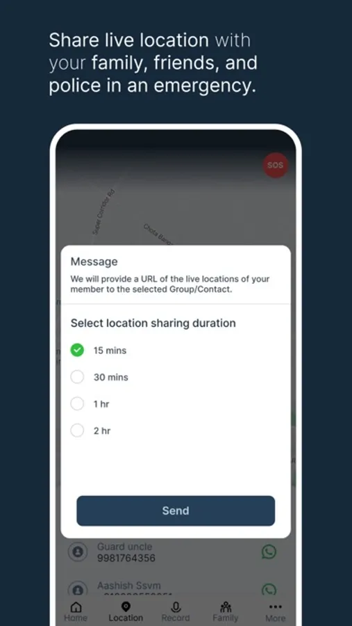 With just one tap you can hear real time background audio of select family members in the event of an emergency