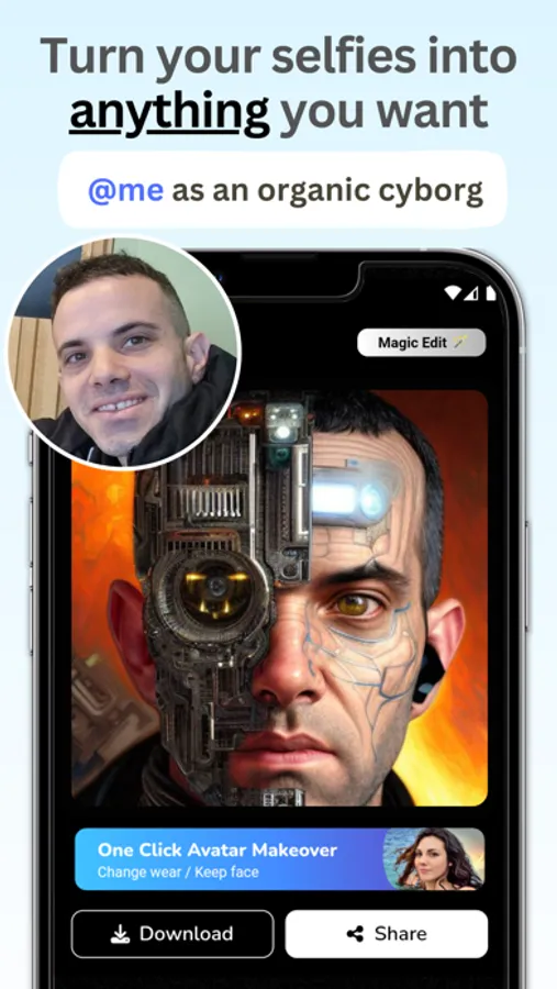 Turn your selfies into beautiful and fully customizable AI Avatars as many times as you want (UNLIMITED)! Use our pre defined AI Avatar packages or create your own custom avatars by using your own words!