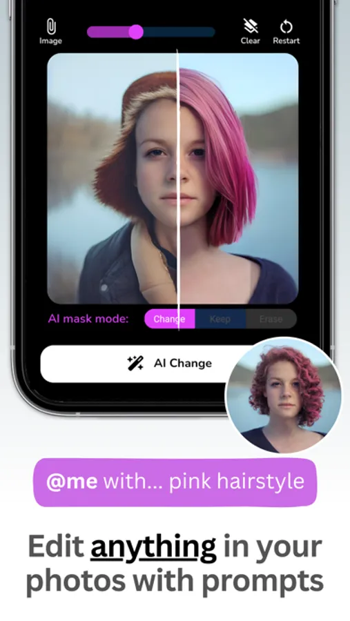Additionally, with iSee you can pick any image, mark what you want to change/add/remove in the image (change the hair, add earrings, change the food in the plate, etc...) and see the magic happens in a click of a button!