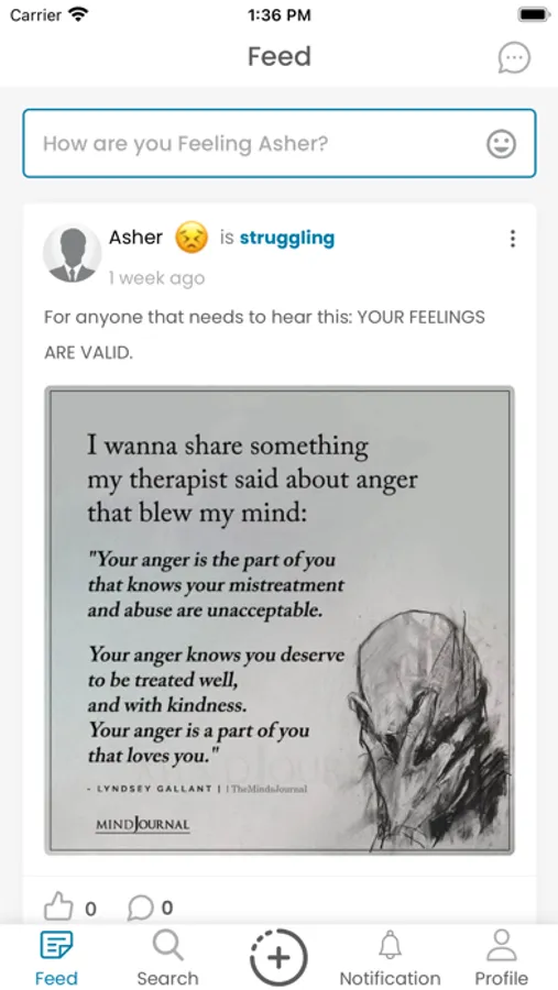 A mental health and social networking app where people can share how they are feeling and connect with others who feel the same way.