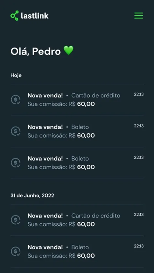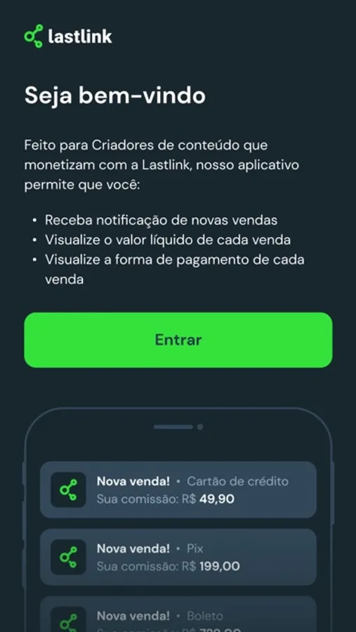 - Seja notificado sobre atividades na sua conta da Lastlink.