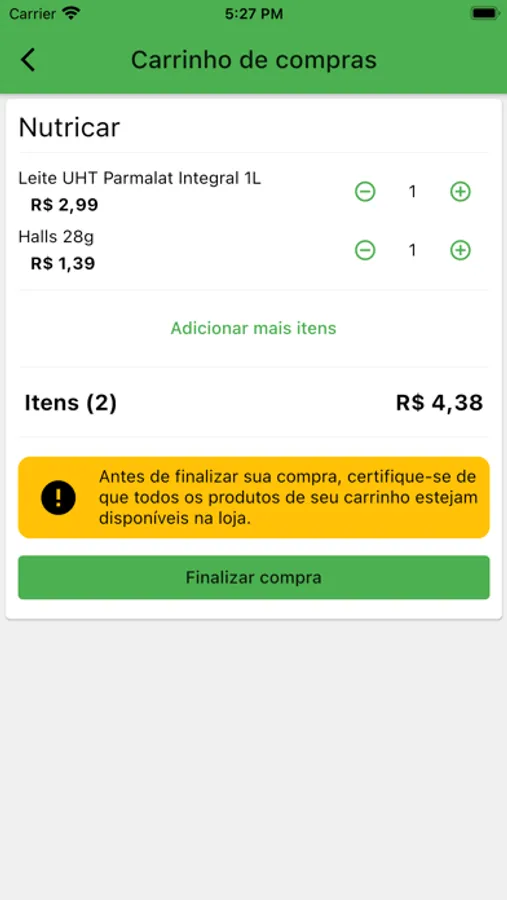 O Nutricar é um aplicativo criado para realizar compras em micromarkets, que são lojas de conveniências de autoatendimento disponíveis em condomínios residenciais ou empresas.