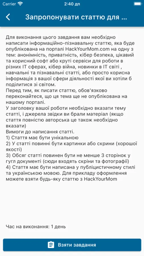 Додаток диванного воїна проекту HackYourmom.com - Sofa Warrior