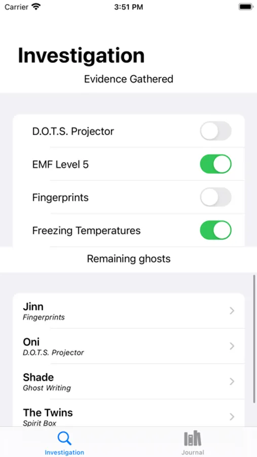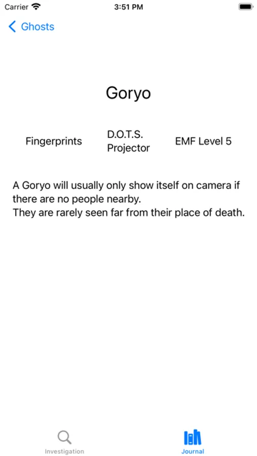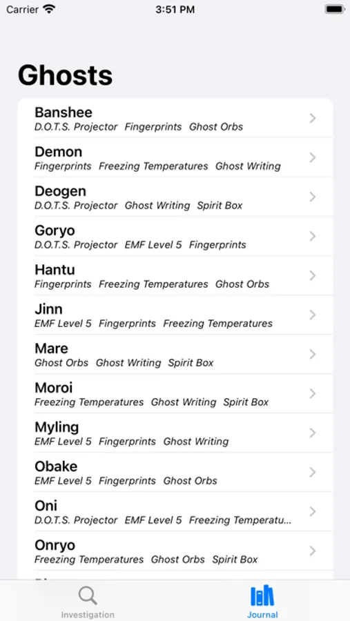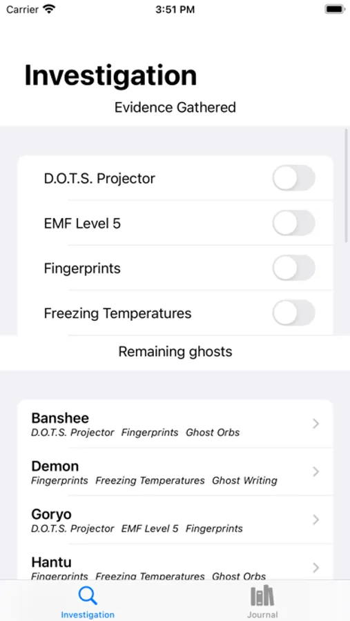 A companion app to the game most popular ghost hunting game. This app will tell you what type of ghost you are dealing with based off the evidence gathered. It will also give you helpful hints on what to look for when trying to find more clues.