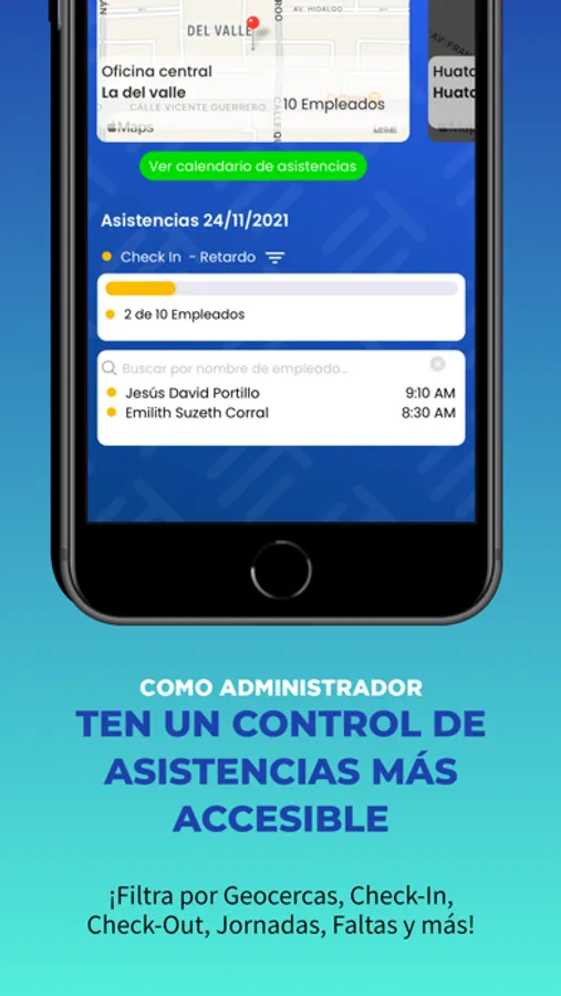Registra entradas y salidas de tu área o áreas de trabajo desde tu celular, todo de la manera más ágil con ayuda de geolocalización y reconocimiento facial. Controla horas extras trabajadas, permisos, prenómina e intercambio de evidencias desde tu área con la oficina central ¡sin importar la distancia y en tiempo real!
