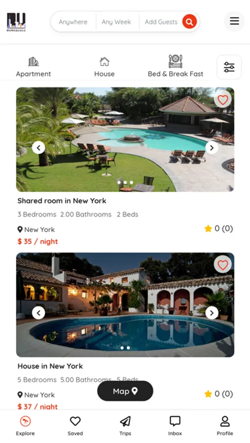 With Bungalulu you will find endless places to stay all around the world, from cabins in Switzerland to luxuries apartments in New York, getaways on any scenario you are looking for, whether you want to stay at the beach or deep in the woods, you will find the appropriate property in Bungalulu App.