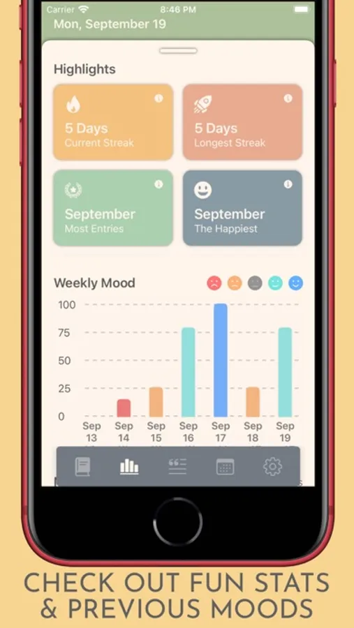 FUN STATS - Easily track your mood over time with easy to read charts and fun highlights like streaks and happiest months.