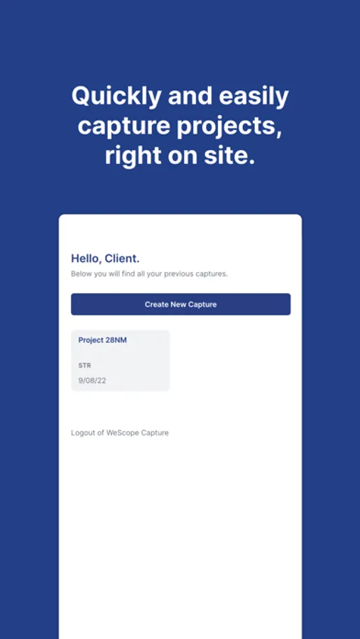 WeScope Capture makes it easy for WeScope clients to quickly and easily capture photos and videos for projects. These notes and media are sent directly to the WeScope team.