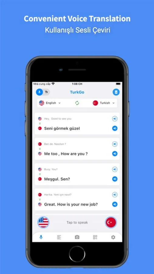 The voice translating feature translates to turkish and vice versa, translate text to voice with typing from keyboard.