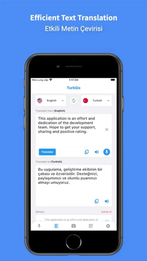 Hi ! TurkGo is the leading turkish Translator with a lot of outstanding features such as accurate voice translator, translate any text in 45 languages to turkish or turkish to any language such as: English, French, German, Italian, Russian, Arabic, etc and extremely useful photo translating feature or learn turkish more easily.