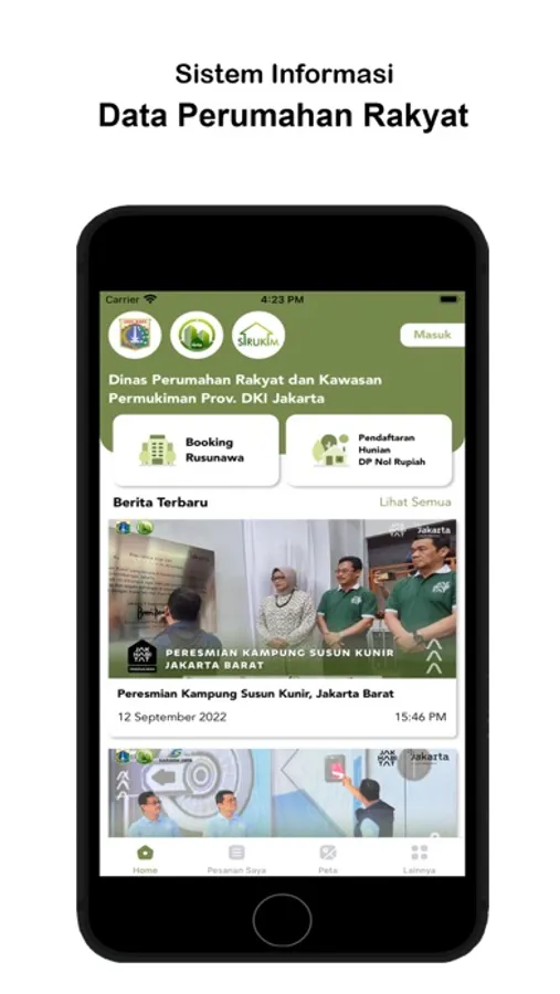 Melalui aplikasi Sistem Informasi Perumahan dan Permukiman (SIRUKIM) Anda dapat mengakses informasi resmi seputar rumah susun sederhana sewa (rusunawa) Pemerintah Provinsi DKI Jakarta dan hunian DP Nol Rupiah, serta mengajukan pendaftaran secara online hanya dalam genggaman tangan kapan pun dan dimana pun.