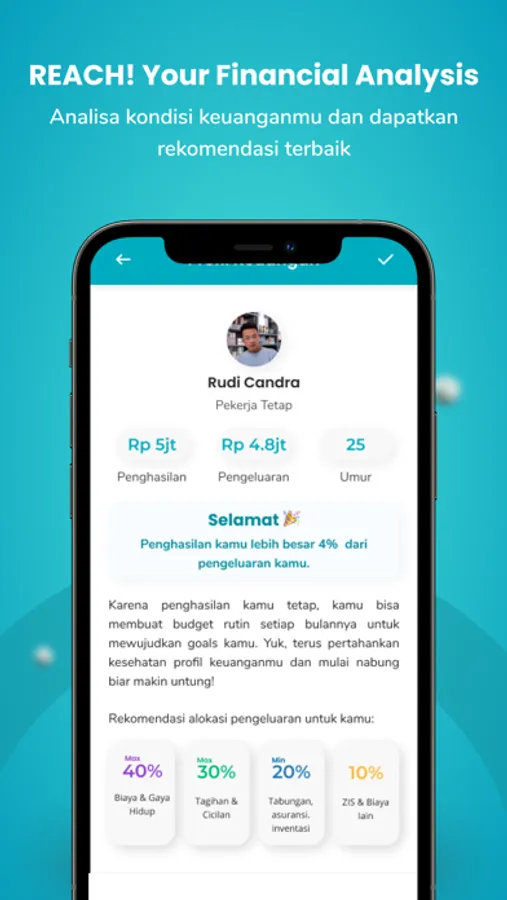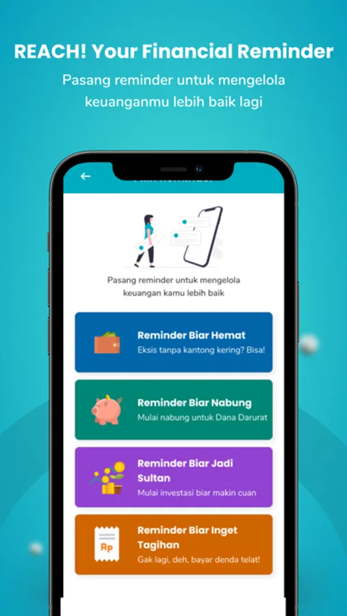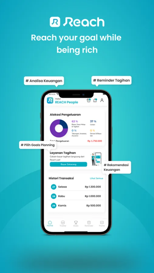 Buat goals jadi nyata, tanpa takut kondisi keuangan yang ga sehat. Selain mewujudkan impianmu, REACH! akan mengatur keuangan yang tentunya dapat dipersonalisasikan sesuai dengan kondisi keuangan kamu.